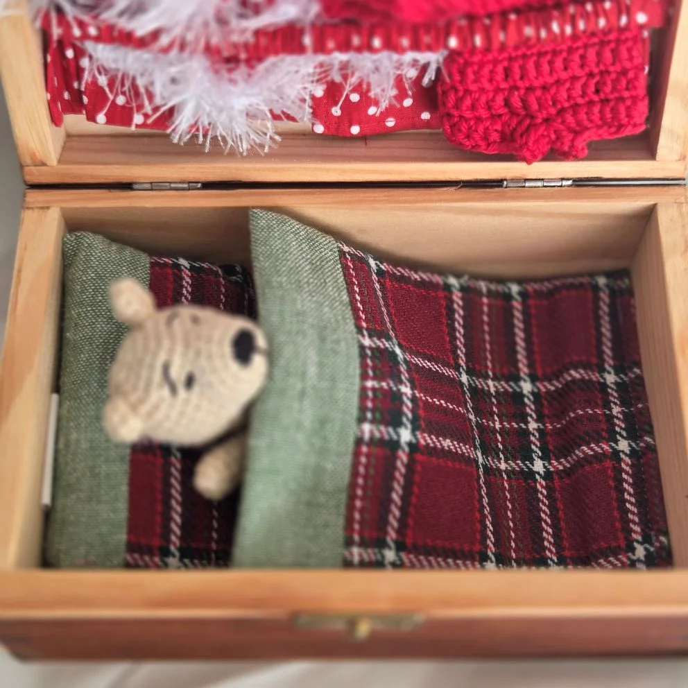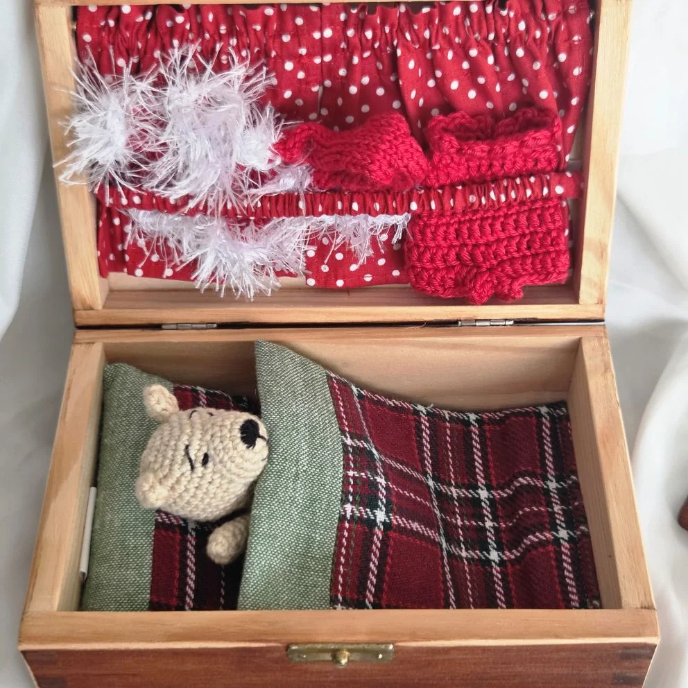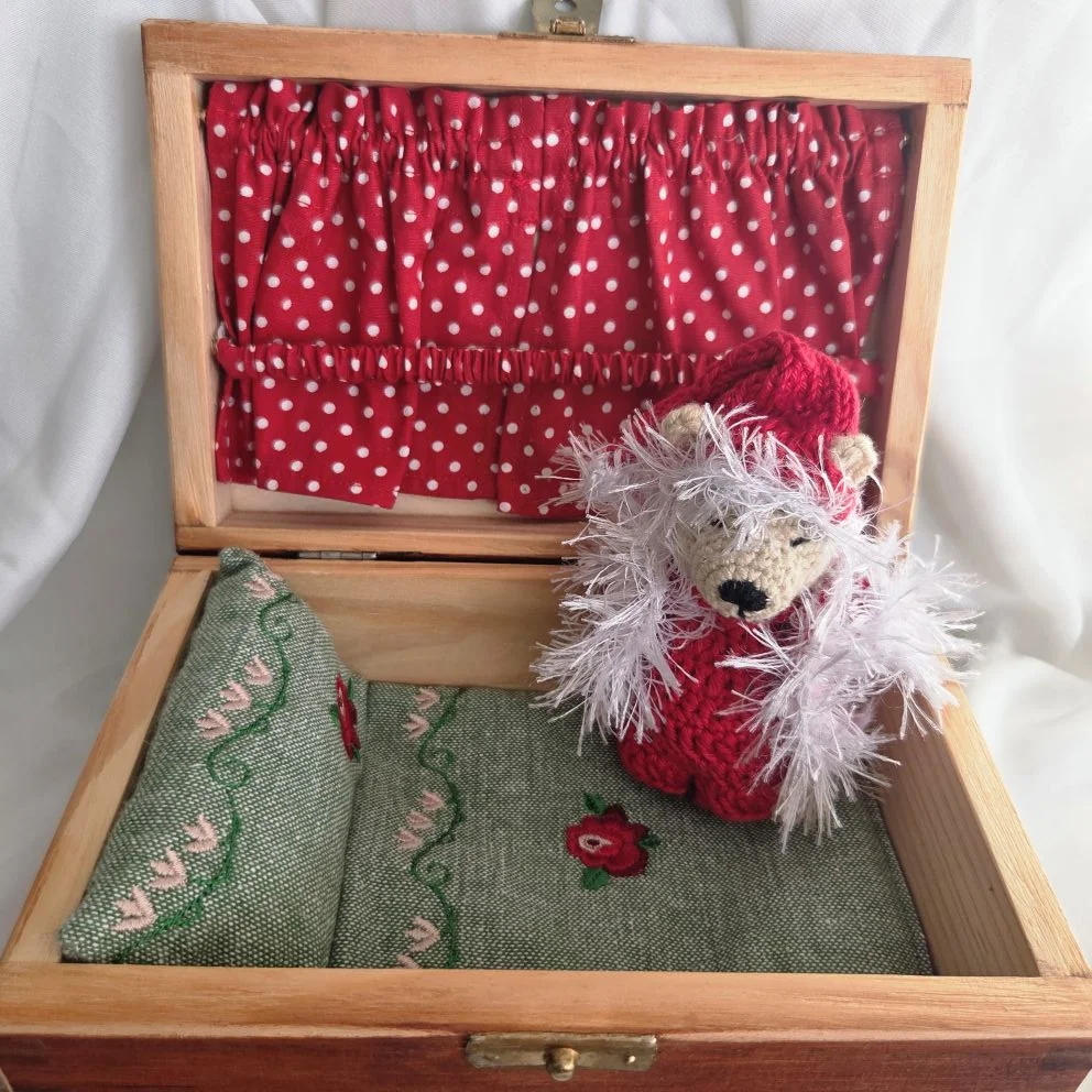 Folkowe misie- czyli misie z tradycjami, ukołyszą Twoje dziecko do snu. Kompan zabaw i psot. Idealny na prezent. Miś Mikołajek wykonany na szydełku. Zastosowano wkład hipoalergiczny. Pościel i poduszka uszyta z bawełny z zastosowaniem haftu komputerowego inspirowane wzorem regionalnym opolskim. Zestaw wraz z drewnianą skrzynką. W wewnątrz wieczka mini garderoba na ubranka.