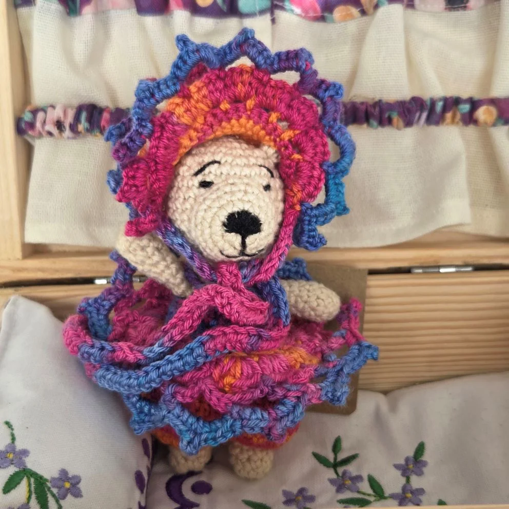 Folkowe misie- czyli misie z tradycjami, ukołyszą Twoje dziecko do snu. Kompan zabaw i psot. Idealny na prezent. Mia Zosia wykonana na szydełku. Zastosowano wkład hipoalergiczny. Pościel i poduszka uszyta z bawełny z zastosowaniem haftu komputerowego ze wzorem regionalnym OPOLSKI.
